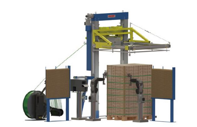 独立設置した結束システムで、プラスティックコンテナケースを結束する構成例を御覧ください。