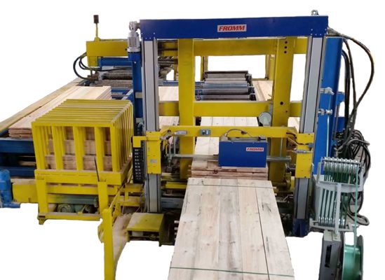 コーナープロテクター装着、ロボットによるボトムバンク配置の工程を加えた結束自動化例をご紹介します。