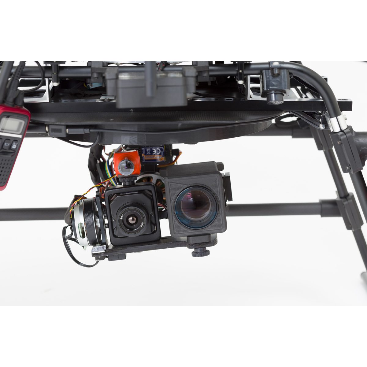 山間等における行方不明者の発見、夜間の生体視認、要救助者の早期発見が可能です。搭載された2つのカメラはリアルタイムで画面の切り替えが出来ます。