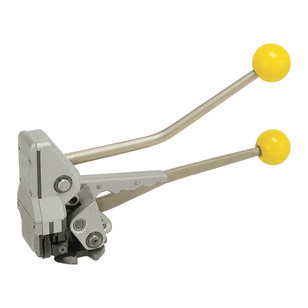 引き締めもシーリングも手動で行うタイプの結束機で、本体重量3.4kgという軽さが魅力。電源も空圧も必要とせず、これだけで帯鉄の結束が可能です。オーバーラップシールが必要である反面、シーリングの際に、製品とバンドの間のスペースや平面をほとんど必要としないため、円筒形の部品や小さな部品でも確実にバンドをかけ、結束することができます。