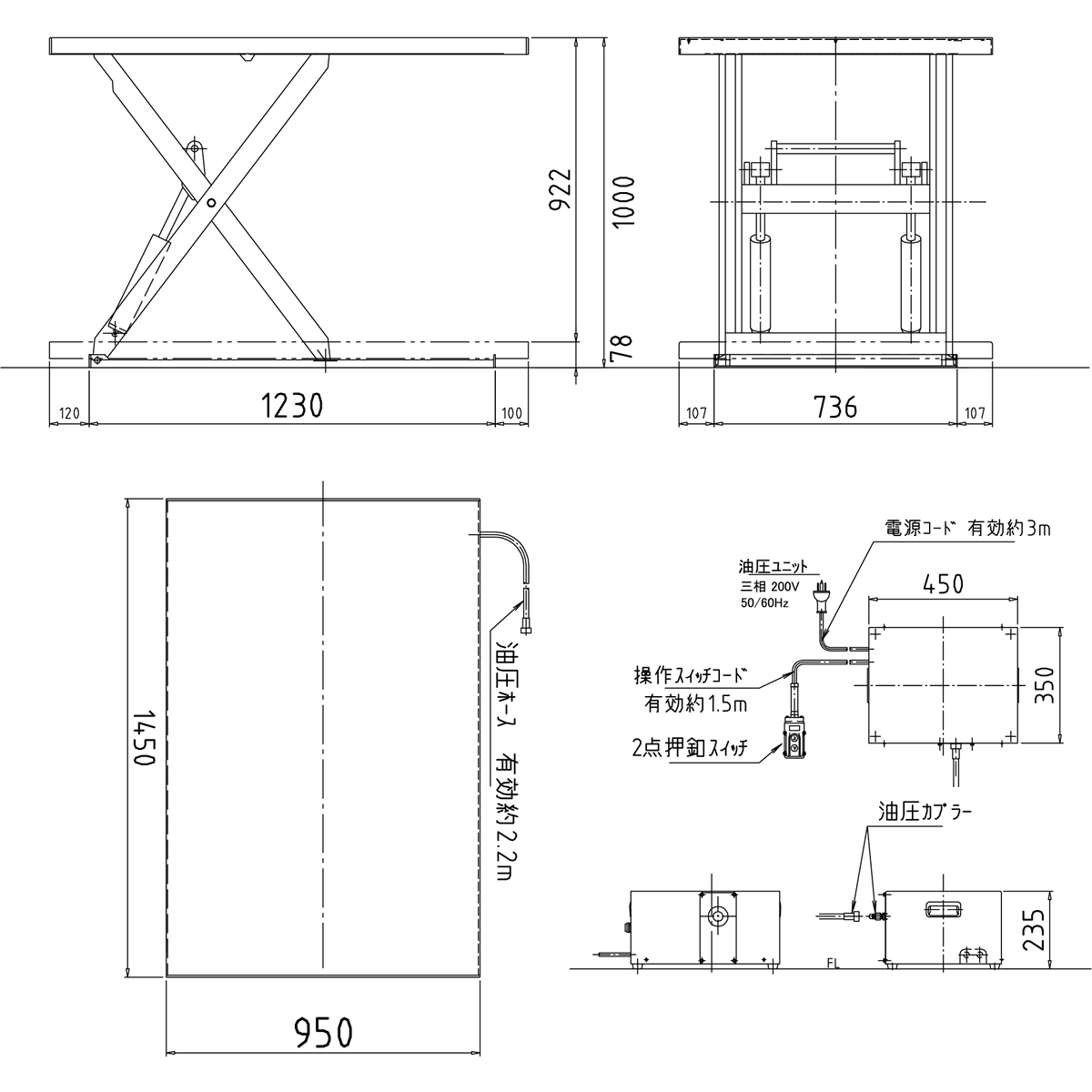 下降時間 | 空荷:30秒 1000kg荷重時:17秒 | 空荷:20秒 1000kg荷重時:17秒 | 空荷:20秒 1000kg荷重時:17秒 |