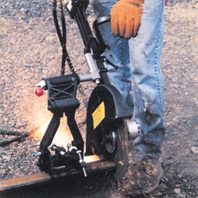 ダイレクトドライブ油圧モータを搭載し、非常にスリムでコンパクトなボディに仕上がっています。ツール本体をレールの左右どちら側へでもワンタッチで切り替えられる機構を装備。人間工学に基づいて設計された長いアームによる操作性の高さも特長です。対応する切断砥石の直径は405mm。切断砥石の交換が簡単に行え、しかもがっちりと固定が可能なロック機構を搭載しています。