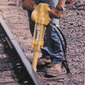 線路を固定する犬釘の打ち込みを行うSTANLEY社の専用油圧式工具です。