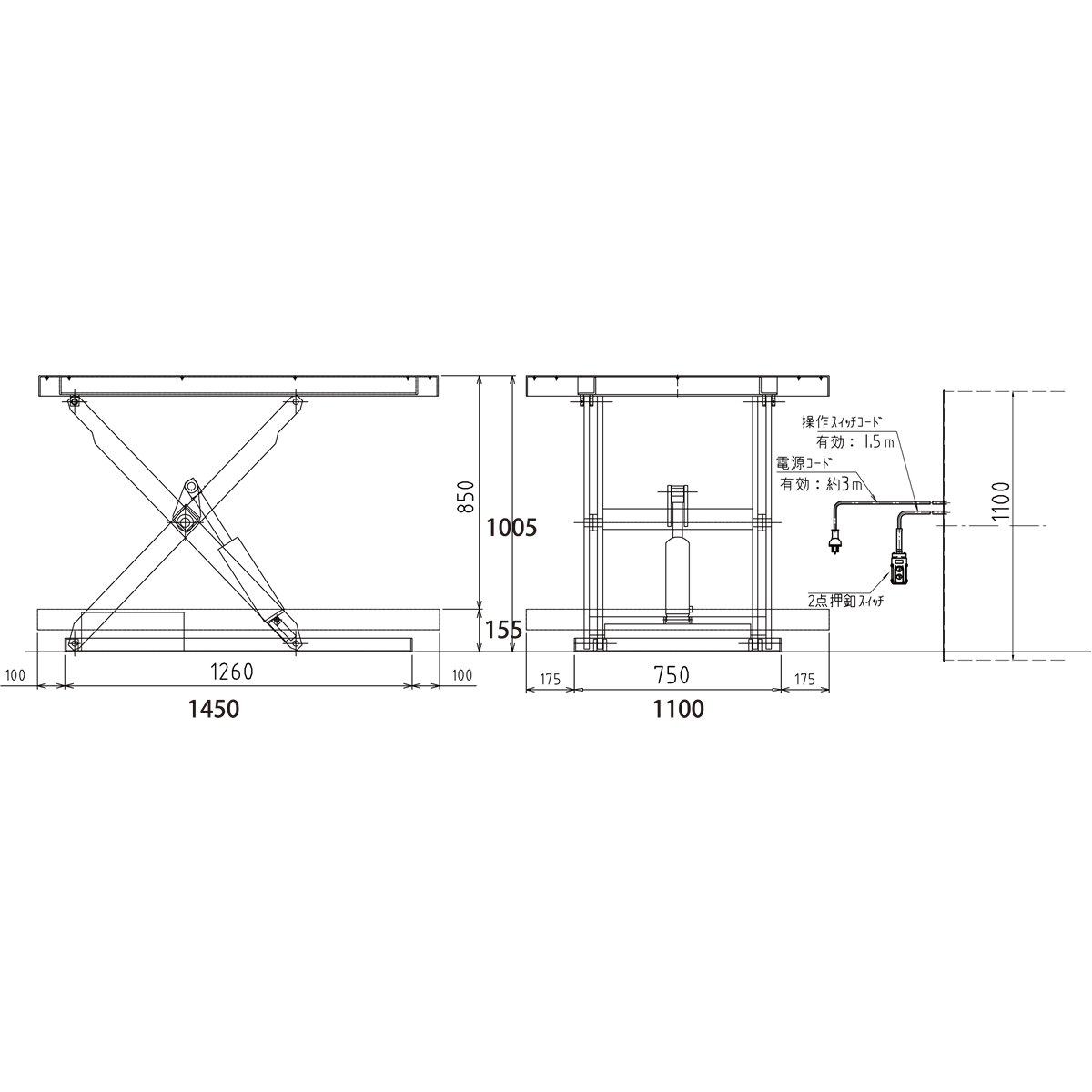 日本統一規格1100×1100mmの平パレットを載せるのに最適なテーブルリフトです。