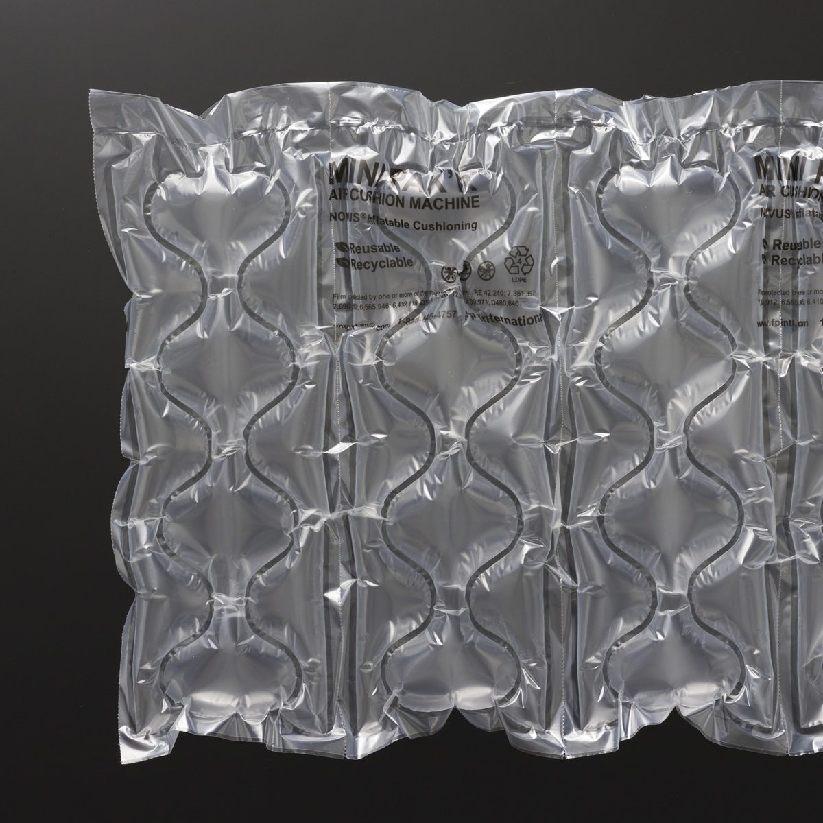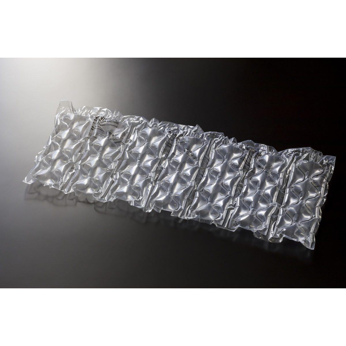 NOVUS ミディアムキルトで製造する緩衝材は平らなエアーパッドがキルト状に連なったクッションシート。陶磁器やガラス製品、照明器具から電子機器といった壊れやすいものまで、幅広く活用しやすいパターンです。