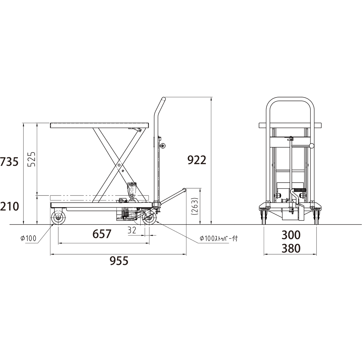 SUS-150は最大積載量150kg、テーブル高210~735mm。