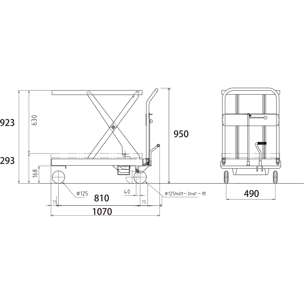 SUS-500は最大積載量500kg、テーブル高293~923mm。