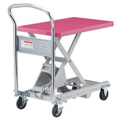 UDLV-150は、最大荷重を50~150kgまで調節可能。上部テーブル450×710mmのコンパクトなレベラー台車です。