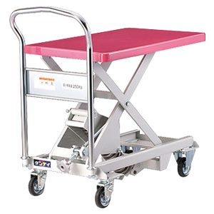 UDLV-250は、最大荷重を100~250kgまで調節可能。上部テーブル500×800mmの中型レベラー台車です。