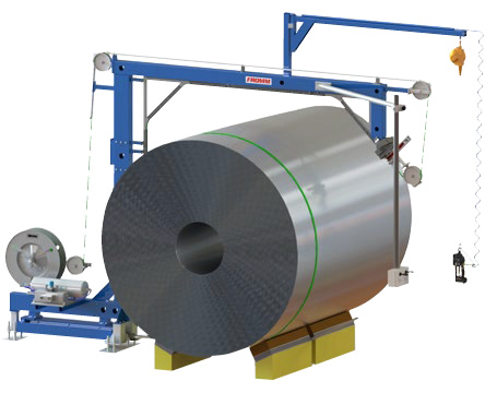 薄型金属コイルの直径方向自動結束をご紹介します。